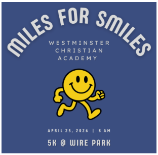 In partnership with Fresh Wind Recovery Ministry, the Chick Fil A Leader Academy of Westminster Christian Academy is sponsoring a Miles for Smiles 5K on Saturday, March 29th at Wire Park in Watkinsville. The goal is to raise funds to help with dental care for individuals who have overcome substance abuse and found new life in Jesus. As these individuals seek to become productive members of society and attain employment, they have every reason to smile. All proceeds from the race are going to Fresh Wind in order to aid in their recovery patients' dental health needs and allow them to smile with confidence.