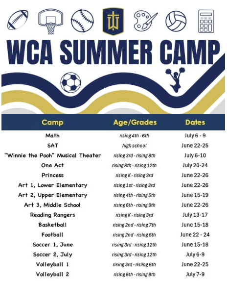 Do not miss out on this opportunity being offered to all rising 9th-12th grade student athletes at WCA!